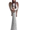 Piękny anioł w dziewczęcej postaci trzymający w dłoni złote serce. Biała sukienka przez, którą przebija się ciepłe ledowe światło. Doskonała dekoracja wpasowująca się w świąteczny klimat.