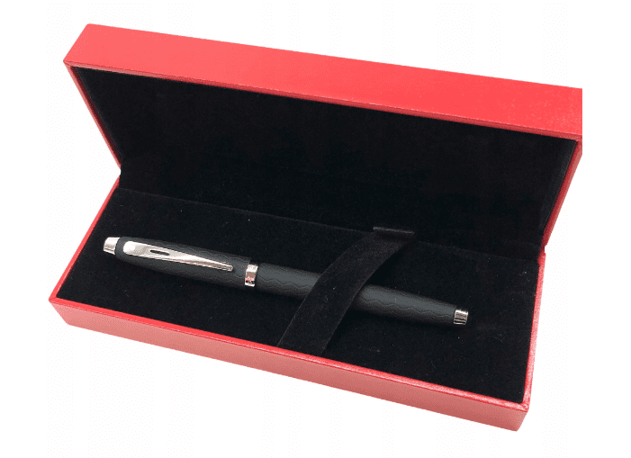 Pióro z serii Ferrari posiada czarny korpus i skuwkę oraz niklowane wykończenia. Korpus pokryty jest kauczukiem w charakterystyczne wzory bieżnika z opon używanych w samochodach Ferrari.